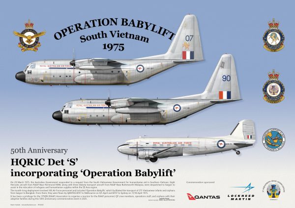 Historical Context : The deployment of 185 RAAF personnel, including Aircrew, Nurses, Doctors, Airfield Defence Guards, Air Movements staff, and support personnel, was a response by the Australian Government to the humanitarian crisis evolving in Southern Vietnam as the North Vietnamese armed forces advanced towards Saigon. The detachment also included participation in the US led ‘Operation Babylift’, the evacuation of infants / orphans from Saigon to Bangkok, where they were uplifted by QANTAS charter flights to Melbourne and Sydney for adoption by Australian families.